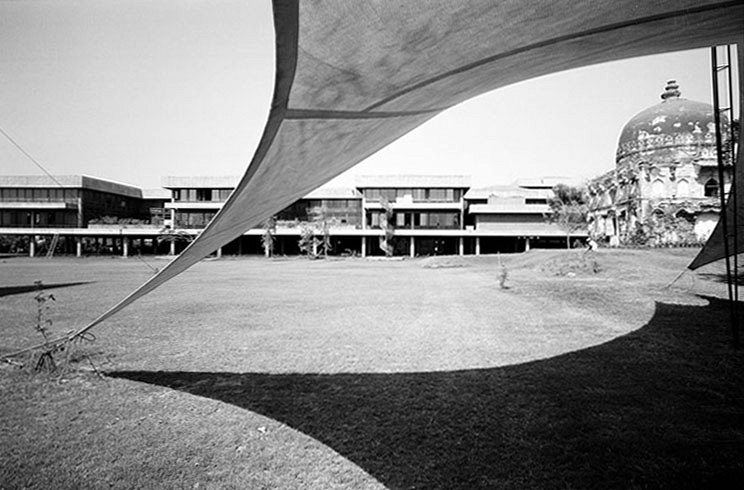 Stepping away from the art center, you see it is built in complete consonance with the surrounding buildings—the campus of the best architecture school in south Asia. All these low piles of modernism are harmonized in the vernacular widely found across the newer areas of this city: tasteful, asymmetrical grid-games of exposed brick and concrete, large windows, attentively placed water pools, all in dialogue with the dry ground and semi-desert vegetation so typical of the area. Soon after India’s independence some sixty-odd years ago, wealthy city fathers (and a few powerful ‘city mothers’ as well) decided to invite international architects and commission the most aesthetically advanced twentieth-century architecture for the city. The effects have not quite worn off yet.