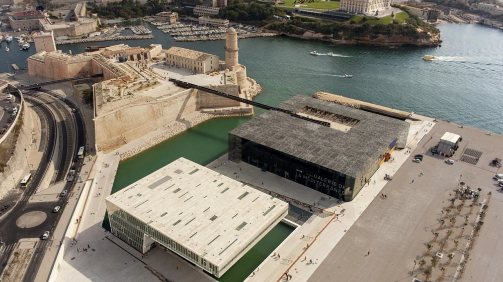 It is not obvious what precipitated the rupture between the city’s images, however. Was it the arrival of the high-speed train—the TGV—to Marseille directly from Paris ten years ago that made the city accessible in a more immediate way to harried Parisians with disposal income? Or is it the fact that Marseille was the Cultural Capital of Europe in 2013, and thus had money to spend on development with a firm deadline? Is it the slow breakdown of an economy based around maritime industrial exports and its replacement by the traffic of enormous, city-sized luxury cruise ships? The MuCEM / Villa Méditerranée cultural complex is part of the Marseille-Euroméditerranée urban renewal and economic development project, whose aim is precisely to entice these traveling consumers to have lunch, go shopping, and see a Picasso show before climbing back onto their floating city. Marseille in 2016 feels poised over some historical chasm in any case, although whether this will kill the city by polishing it remains to be seen.