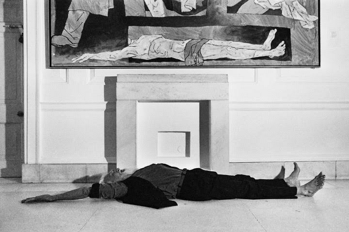 Displayed as part of the KNMA’s show “Stretched Terrains” (3 February to 31 July 2017), alongside Husain’s paintings and those of FN Souza and SH Raza, two of his contemporaries in the Bombay Progressives group, were a series of photographs of Husain by Parthiv Shah, taken between 1993 and 2003 when Husain and Shah walked around locations in Delhi including the Sufi shrine of Nizamuddin, in the south of the city. Throughout his life, Husain was a quiet but very conscious performer. A tall, handsome man, he cultivated his ‘profile’ as a sharp nosed, sumptuously bearded man with a high forehead—in the later years the beard and mane turning an instantly recognizable clean silver. In these photographs, Husain walks around his city, poses against architecture, lies supine in an alcove like a Buddha figure, and so on. The photographs are a record of a young photographer’s informal interaction with a famous man who both does and does not take himself seriously, who is willing to, if not laugh, smile broadly at himself and at his self-authored iconicity. But on another level, in the heavily Hindutva-ridden Delhi of 2017, the large presence of the man in a major gallery takes on quite a different significance: whatever the Hindu fascists’ efforts, it is a strong political statement to show a series of portraits of a man who was forced into exile by them. Whatever the state institutions might be doing, the fact that private art spaces can still produce the odd gesture of protest is somewhat heartening.