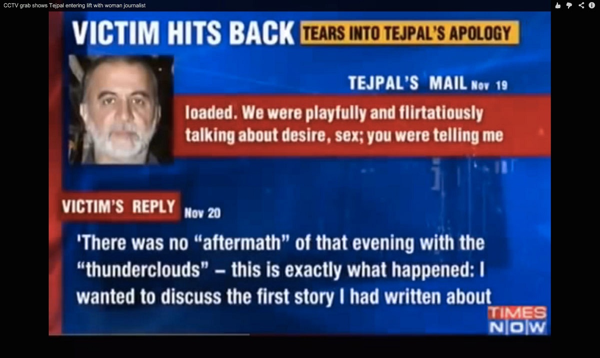 Being about the same age as Tejpal’s eldest daughter, and a friend of hers, the woman called her and told her what had happened, which, apparently led to repercussions for Tejpal, which in turn led to angry texts from Tejpal to the young woman accusing her of blowing “innocent sexual banter” out of all proportion and having no understanding of a father-daughter relationship. A week after the incidents, back in Delhi, what the young woman wanted was an apology from Tejpal and an acknowledgement that he had done something wrong and hurtful. In the domino sequence of leaked e-mails is the e-mail of apology that Tejpal wrote to his employee and his daughter’s friend.