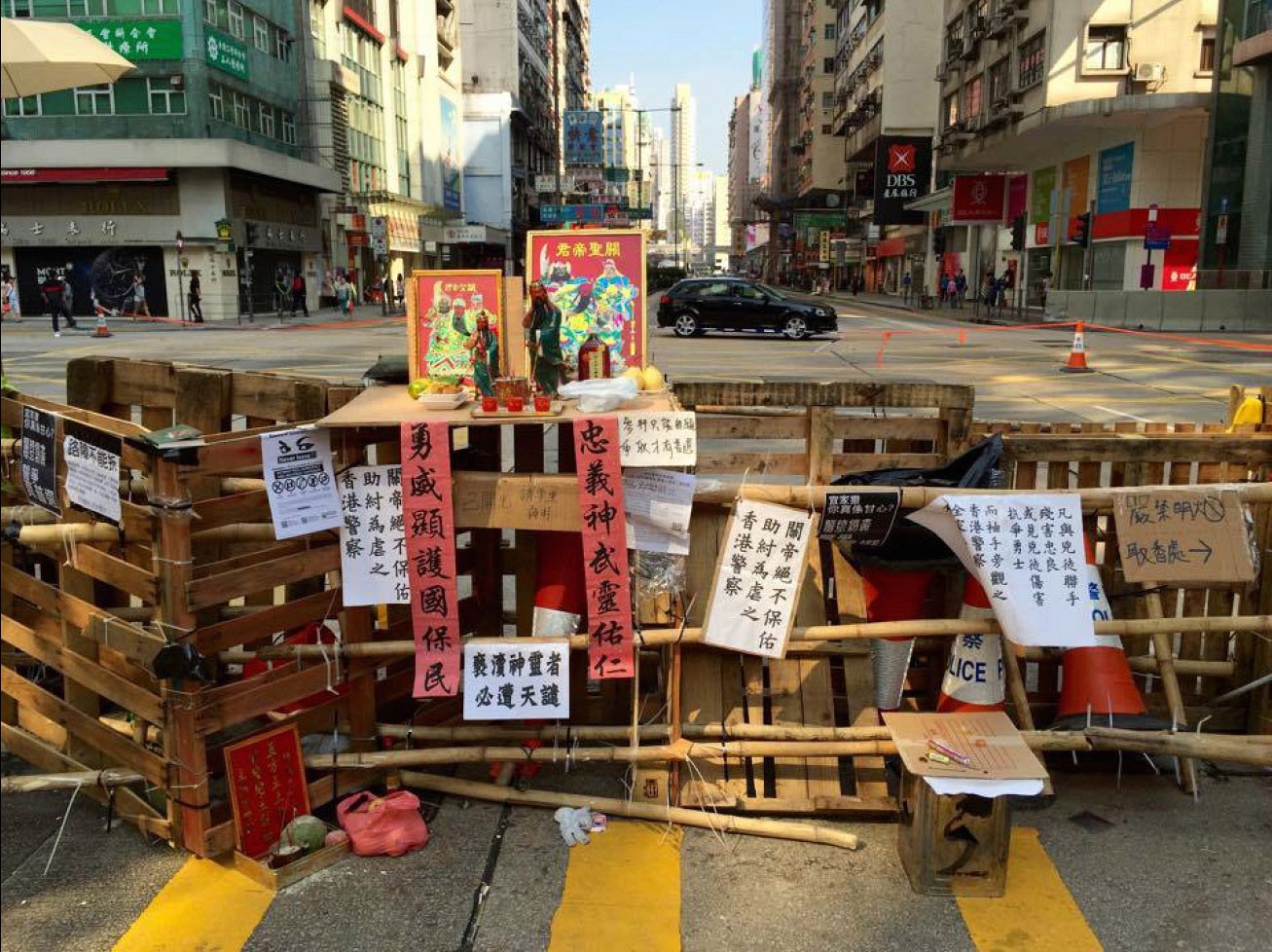 We sat on a stoop in Sheung Wan. It was raining hard, thick and hot. Midnight had long passed and I had just come back from the Admiralty district. Chen and Jin were drinking boxes of sweet lemon tea; I, tall cans of beer. Chen and I live in the same neighborhood. His parents operate the Thai restaurant in the Sheung Wan Municipal Services building six-and-a-half days a week. They worried about him getting hurt or arrested in the occupation, but he had been down to Admiralty a few times with tens of thousands of students, workers, professors, and others occupying the streets. He helped build and defend barricades. Jin’s family owns a factory for air-conditioning parts in Shenzhen. He has a Hong Kong passport and moves back and forth between the two cities.