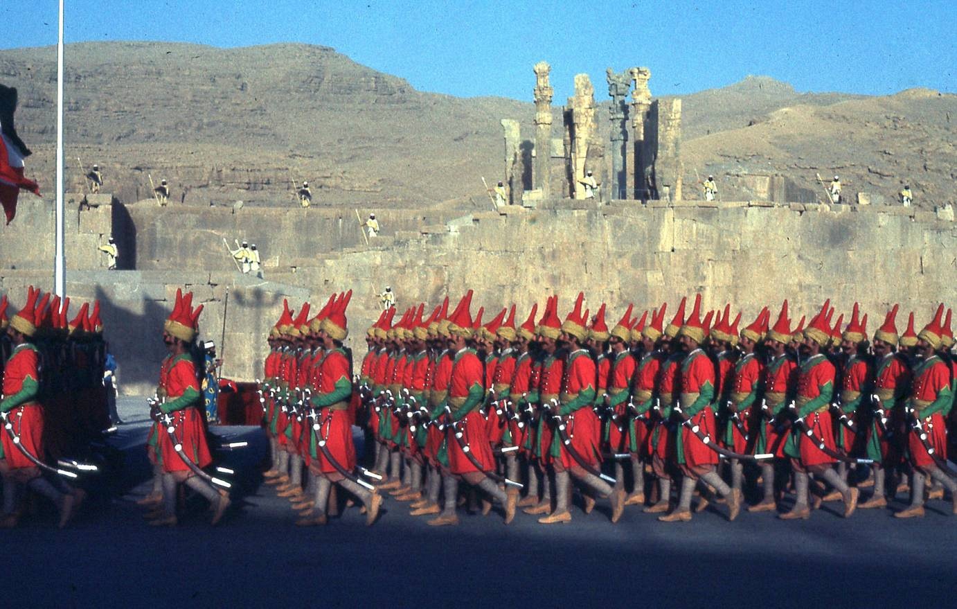 The festivities began with the royal family’s homage to Cyrus the Great at his mausoleum on Tuesday 13 October 1971, a day before the queen’s own birthday. The event, which was broadcast on national television, was edited to eliminate some of the key military people present and give prominence to the queen.