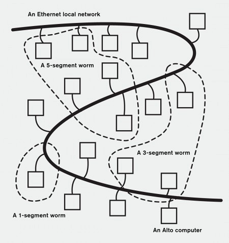 What I turned loose in the net yesterday was the father and mother of all tapeworms… My newest – my masterpiece – breeds by itself... By now I don't know exactly what there is in the worm. More bits are being added automatically as it works its way to places I never dared guess existed... And –no, it can't be killed. It’s indefinitely self-perpetuating so long as the net exists. Even if one segment of it is inactivated, a counterpart of the missing portion will remain in store at some other station and the worm will automatically subdivide and send a duplicate head to collect the spare groups and restore them to their proper place.1Quoted in Shoch and Hupp, p. 1.