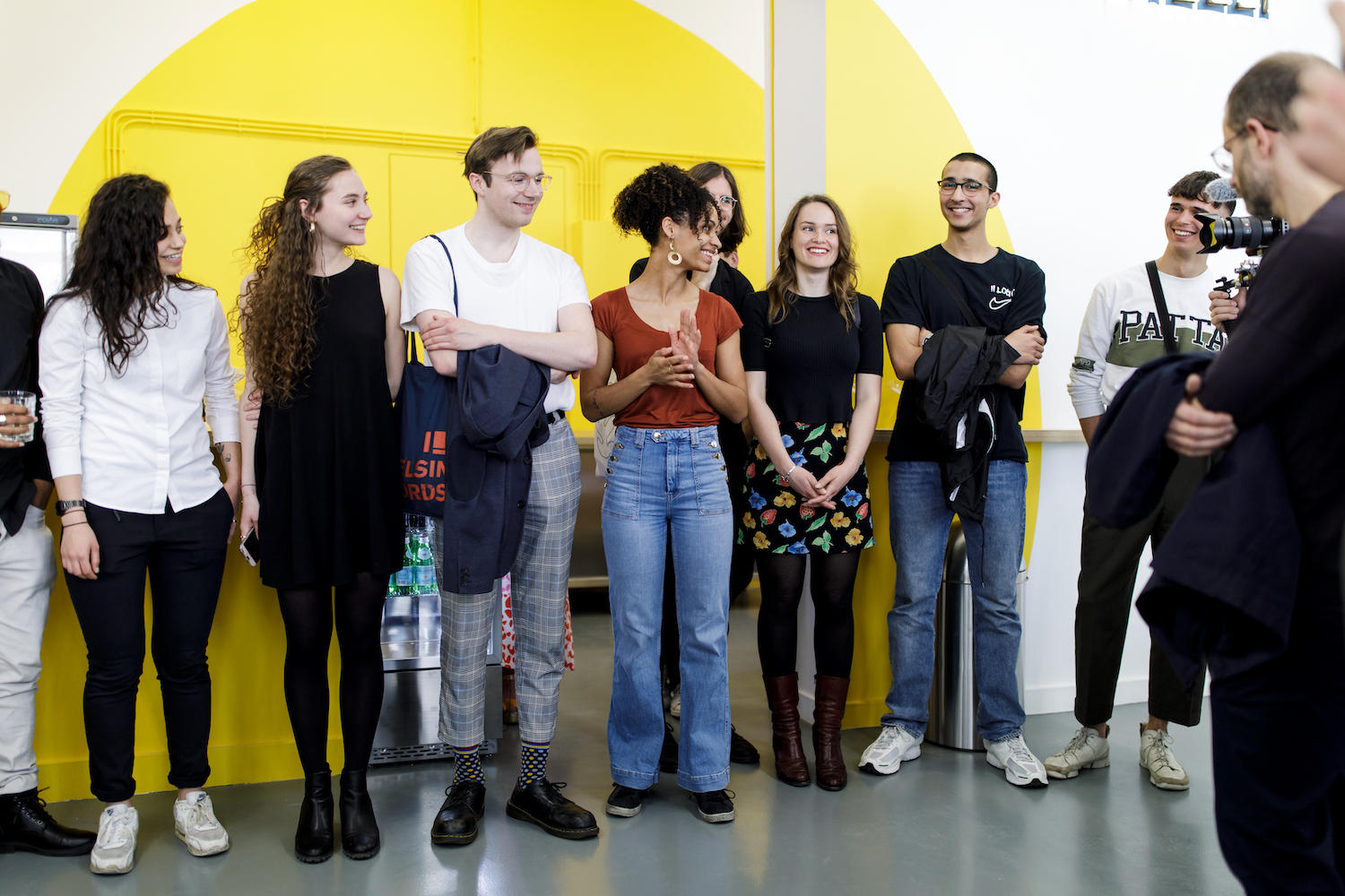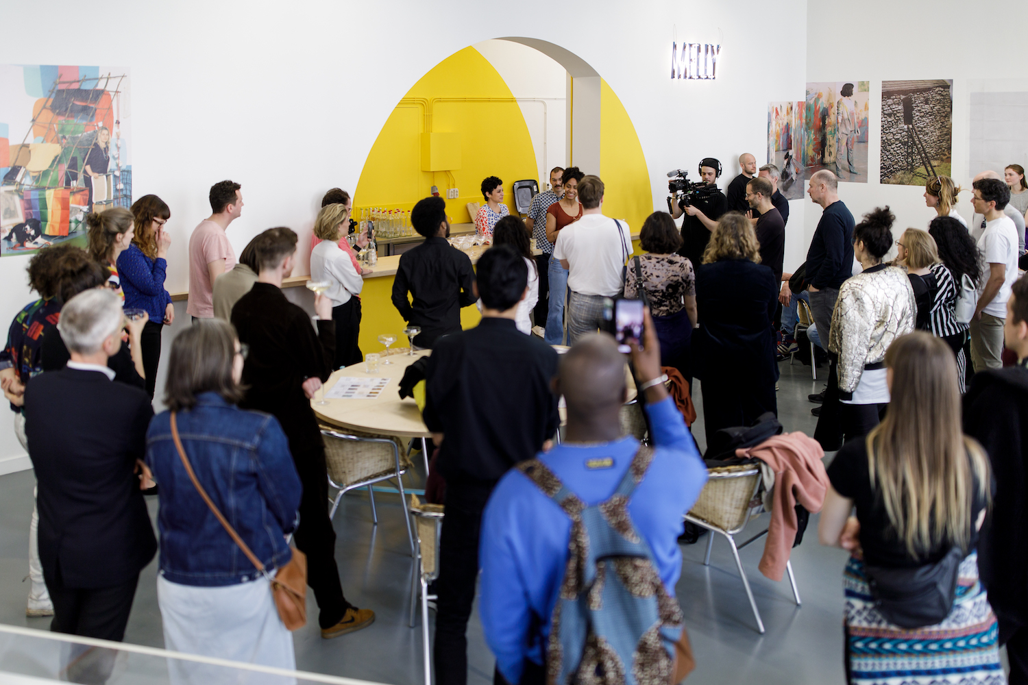 Deelnemers van het Werk-Leer Project 2018–2019 en teamleden van Witte de With tijdens de opening van MELLY. Fotograaf: Aad Hoogendoorn.