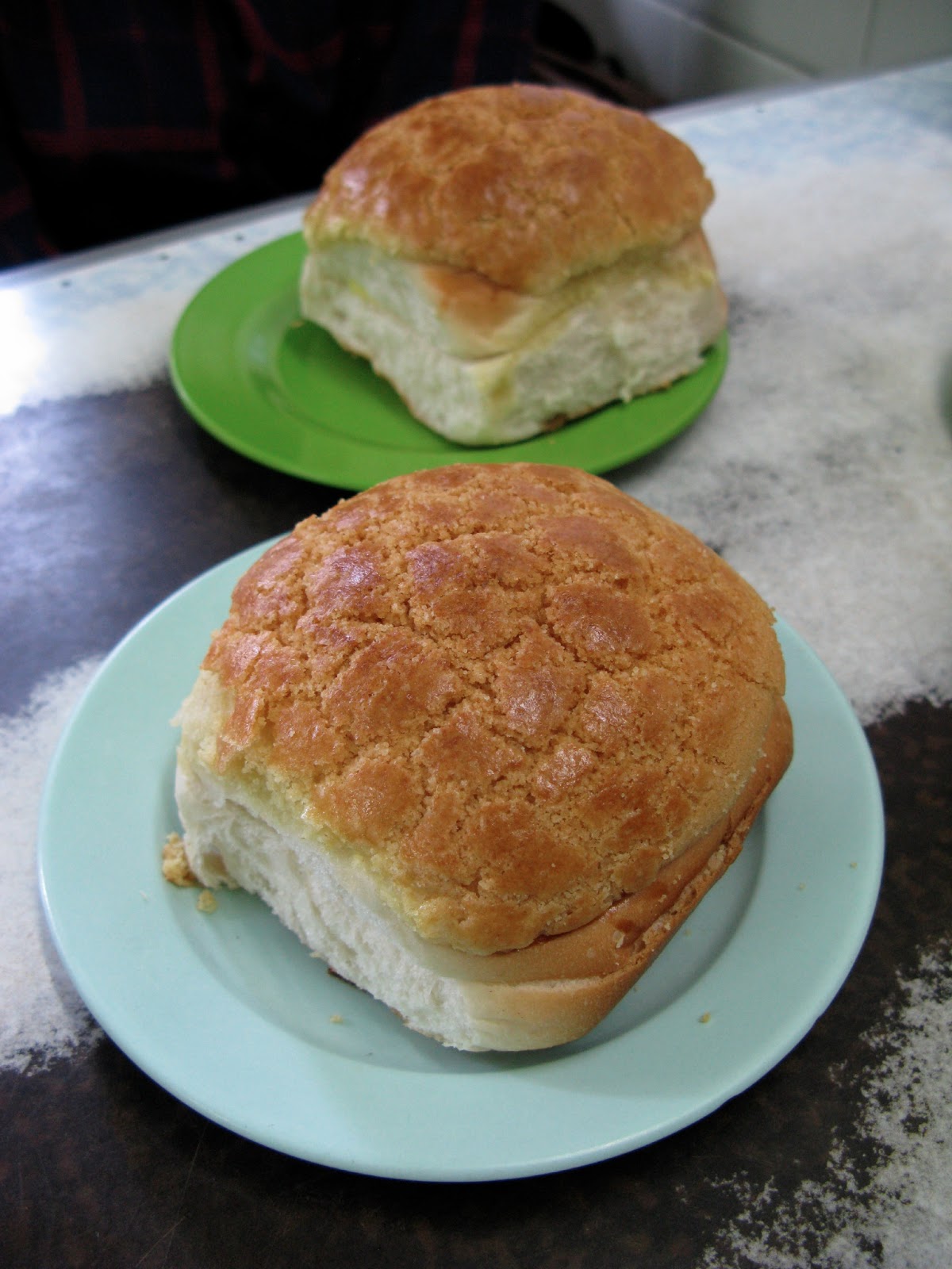 Lunch break: Pinneaple bun, a soft bun with sugar on top and a slice of butter inside.