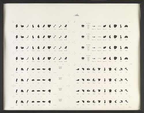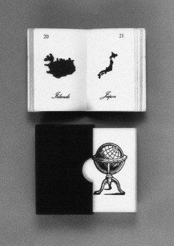 La conquête de l’espace. Atlas à l’usage des artistes et des militaires (The Conquest of Space. Atlas for the Use of Artists and the Military), Marcel Broodthaers, 1975 An atlas measuring just 38mm x 25mm, consisting mostly of a series of uniformly small icons of national territories, yet depicting no cities, rivers or mountains.