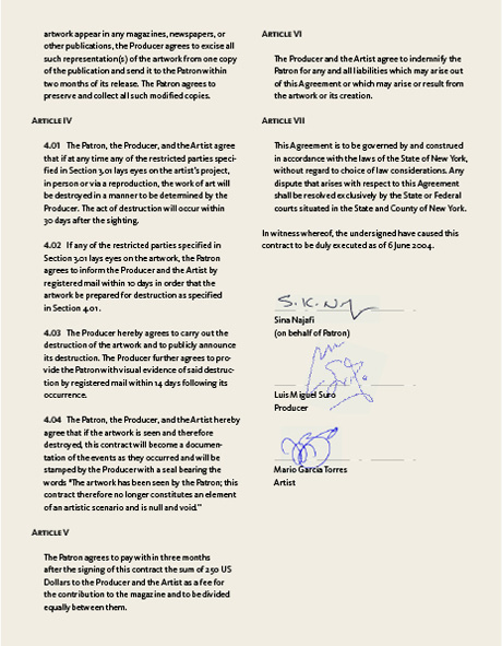 G: Yeah, and everywhere we went, a lawyer would be contacted by the gallerist or the curator, and then this contract would come back, and we get one question or something like that. Often, the questions relate to regional specificity, and that will be that. And we would do it. But in Hong Kong, it is very different. We really had many meetings. Everything has been gone through with the team, Heman, about what the network would be, and what the repercussions will be. So it’s much more fully a work now than it has ever been before.