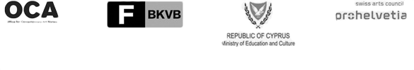 Office for Contemporary Art Norway; Cypriot Ministry of Education & Culture; en Pro Helvetia: Swiss Arts Council. Met dank aan het Fonds BKVB; Canada Council for the Arts; en Nationalgalerie im Hamburger Bahnhof – Museum für Gegenwart – Berlijn.
